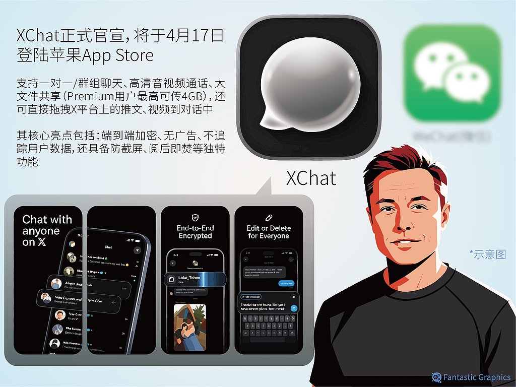 全球科技圈迎来重磅消息,马斯克旗下X平台官宣,独立通讯应用XChat(马斯克版微信) 将于4月17日登陆苹果App Store,目前国内苹果区已开放预约,一场海外超级App对标微信的浪潮正式拉开帷幕。这款酝酿四年的产品,能否在国内正常使用、与国民应用微信有哪些核心差异,成为全网热议焦点。