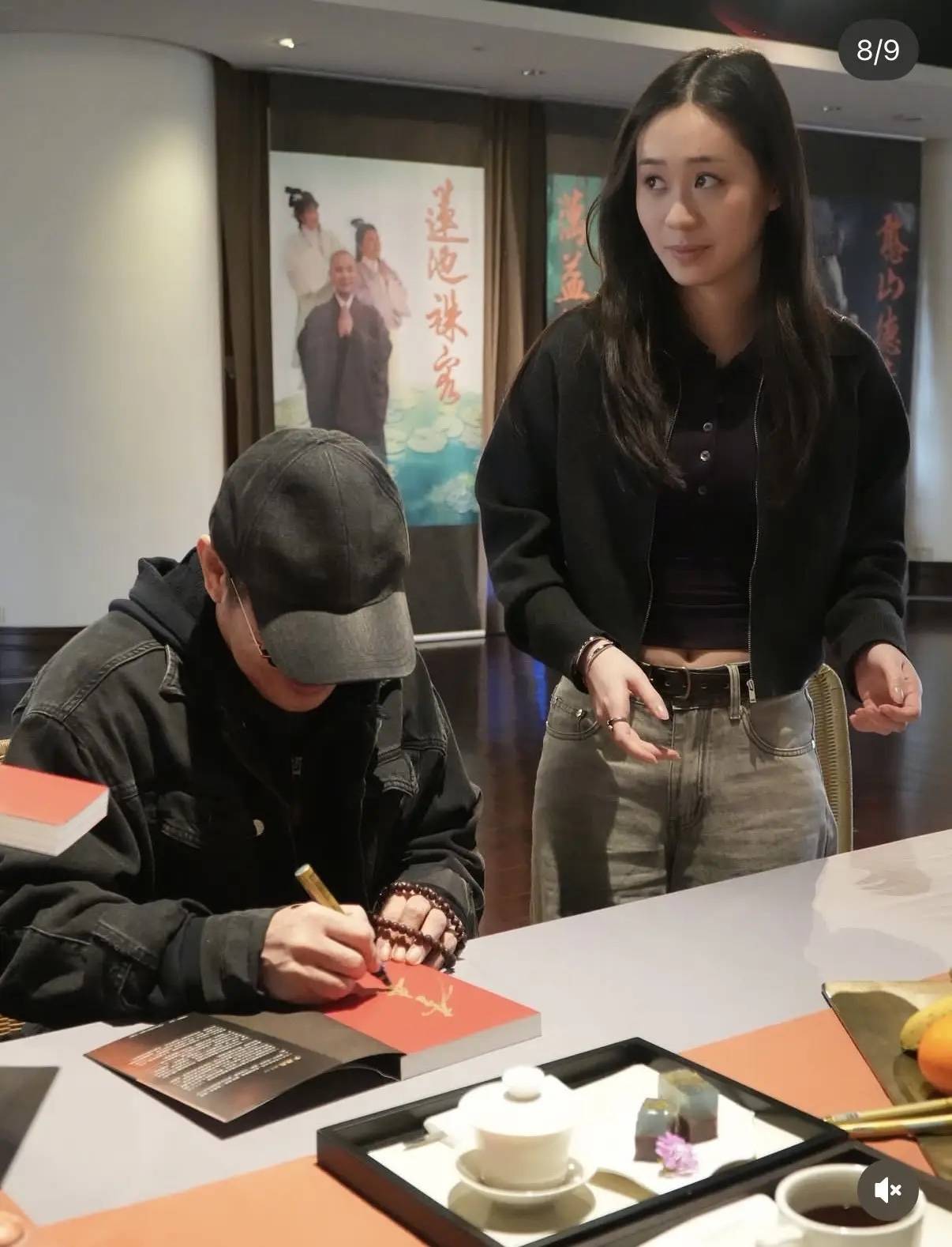 这次在台北出席活动,父女俩便在法鼓山逗留了几日。Jada一直陪在父亲身边,父亲给佛书签名的时候她就安静的陪着。
